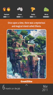I "CEO Tycoon: My Game Studio" handler succes om at mestre de kritiske nøgletal. Hold et skarpt øje med dine medarbejderes trivsel, tiltræk flere spillere, prioriter spilkvaliteten og administrer din økonomi med omtanke. Dine valg dikterer, om dit studio blomstrer eller falder. Oplev en rig og fordybende fortælling, der tager dig med på en episk rejse fra den ydmyge garage til de ydre rum, krydret med både historiske og fantasifulde begivenheder. Vær vidne til dit eget studios op- og nedture og afgør dets endelige arv. Skæbnen for din digitale drøm hviler i dine hænder.