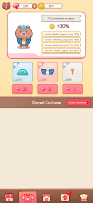 Sæt dit personlige præg på din bjørnehelt ved at samle en bred vifte af yndige kostumer. Hvert outfit er ikke blot et udtryk for stil, men bærer også særlige funktioner, der strategisk kan forbedre og strømline driften af din voksende forretning. Skræddersy din bjørns look og oplev, hvordan hvert valg kan optimere din butiks effektivitet, hvilket skaber en sjov og givende oplevelse, der balancerer kreativitet med smart forretningsdrift.