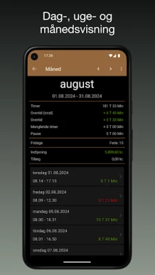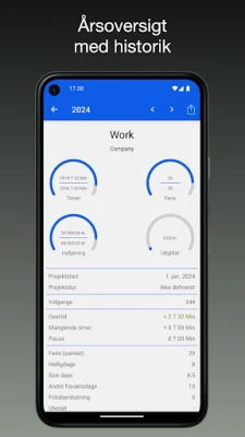 Få et dybdegående indblik i din tid med detaljerede oversigter over sygedage, ferie og minustimer – alt sammen præsenteret dagligt, ugentligt, månedligt eller årligt. Med understøttelse af administration af flere projekter og en arbejdstidskonto, samt mulighed for registrering af korttidsarbejde med dynamisk lønberegning, er iboChron designet til at matche enhver professionel ramme. Eksporter dine data som en overskuelig timeliste i CSV-format, klar til åbning i Excel eller Numbers, og beskyt dine fortrolige oplysninger med Face ID eller Touch ID. Tilpas din oplevelse med forskellige temaer, herunder Dark Mode, og tilføj noter til hver registrering for en fuldkommen dokumentation. iboChron er din komplette løsning til en velorganiseret arbejdsdag.