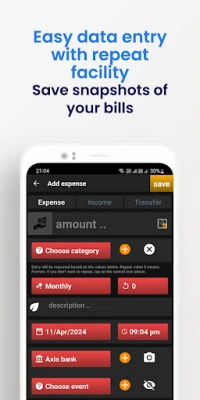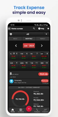 Monthly Expenses hjælper dig med at få kontrol over dine udgifter og indtægter på en meget enkel og intuitiv måde. Den hjælper dig også med at oprette budgetter for forskellige udgiftskategorier og bedre organisere dit forbrug.