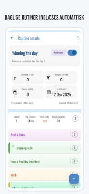 "Daily Planner" samler alle dine forpligtelser og ambitioner ét sted. Uanset om du skal koordinere familiens skema, administrere komplekse arbejdsopgaver eller optimere din personlige sundhedsrutine, tilpasser appen sig dine behov. Opret dynamiske daglige rutiner, planlæg enkelte hændelser eller gentagende opgaver med lethed. Med et enkelt tryk kan du indsætte nye aktiviteter i din kalender og kategorisere dem, så din dag altid giver mening. En ren og overskuelig grænseflade sikrer en uforstyrret oplevelse uden reklamer, lige fra første brug. Appen tilbyder fleksibiliteten til at komme i gang med det samme, uanset om du vælger at oprette en profil eller ej.