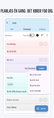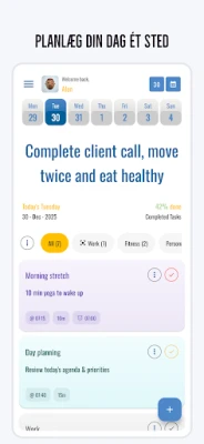 Opdag en intuitiv daglig planner og kalenderoplevelse designet til at organisere din hverdag effektivt. Nyd en fuldstændig reklamefri platform med en enkel engangskøbsmodel. Få styr på dine aftaler og opgaver uden afbrydelser.