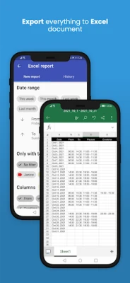 Få dybdegående indsigt i din arbejdsøkonomi med detaljerede statistikker og diagrammer. Se månedlige, ugentlige eller tilpassede periodestatistikker direkte på skærmen, som giver dig et klart billede af dine trends og indtjening. For ekstra sikkerhed og nem deling indeholder løsningen automatisk cloud backup og giver dig mulighed for at eksportere brugerdefinerede datointervaller til Excel-ark. Del dine data problemfrit via Dropbox, e-mail eller Google Drev, og hold dit lille forretningsteam opdateret og organiseret med en pålidelig sporingsmekanisme. Dette er din ultimative partner til effektiv og gennemsigtig tidsstyring.