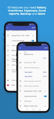Med enestående fleksibilitet er denne app designet til at imødekomme enhver arbejdssituation. Opsæt skræddersyede skabeloner for gentagne indstillinger, definer forskellige skifttyper, og spor timer med enten en fast eller timeløn. Værktøjet beregner automatisk din forventede løn og håndterer alt fra betalte og ubetalte pauser til engangs- eller timebonusser og udgifter. Tilføj mærker og noter til dine poster for detaljeret kontekst, og nyd den visuelle sortering efter farve, der gør det nemt at organisere og finde specifikke data hurtigt. Med den indbyggede kalender-widget er det desuden ubesværet at navigere gennem dine registrerede data.