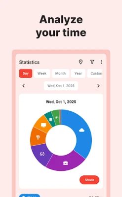 TimeTune bygger på princippet om tidsblokering, hvor din dag opdeles i håndterbare segmenter. Du indsætter simpelthen tidsblokke for specifikke aktiviteter eller opbygger skabeloner til gentagne rutiner – som din morgenrutine, ugeskema eller arbejdsskift – der kan genbruges igen og igen. Dette automatiserer din planlægning og sikrer en problemfri kalender. For at give dig et dybdegående indblik i din tidsbrug tilbyder TimeTune også detaljerede statistikker, der afslører, hvor din tid går hen, og hvor der er potentiale for forbedring. Personlige påmindelser med tilpassede vibrationer, lyde eller stemme kan tilføjes til hver blok, hvilket er særligt gavnligt for brugere med ADHD, der har brug for ekstra støtte til at fastholde fokus.