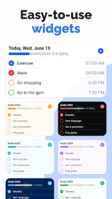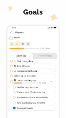 TaskUp forstår, at motivation er nøglen til succes. Definer dine langsigtede mål og spor din fremgang med dedikerede mållister, der holder dig engageret. Opnå komplet kontrol med tilpasselige tjeklister for hver opgave og underopgave, så du kan sikre, at intet overses. Anvend tags og prioriteringer for at kategorisere og hurtigt navigere i dine opgaver, hvilket optimerer din arbejdsgang. Og for den ultimative bekvemmelighed giver TaskUp dig adgang til dine vigtigste oplysninger direkte fra din startskærm via praktiske widgets. TaskUp life organizer er din partner i at skabe en velorganiseret og effektiv hverdag.